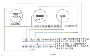 渦街(jiē)流量計與流量(liang)積算儀接線方(fāng)法