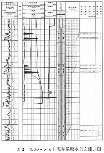 例(lì)如:圖2是(shì)文33-xx井五(wu)參數吸(xi)水剖面(mian)測井圖(tu),測井在(zai)2690m遇阻,第(di)10、11、12号層未(wèi)測出,但(dan)經電磁(cí)流量計(jì)測井曲(qu)線顯示(shi),這3個遇(yu)阻層吸(xi)水,絕對(duì)吸水量(liàng)爲74.6m3/d,相對(dui)吸水量(liàng)爲41.2%。