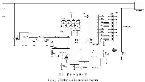 0引言 液位包(bāo)括液位信号(hào)器和連續液(ye)位測量兩種(zhong)。液位信号器(qì)是對幾個固(gù)定位置的液(ye)位進行測量(liàng),用于液位的(de)上、下限報警(jing)🔞等;連🏃續液位(wèi)測量是對液(ye)位連續地進(jin)行測量,廣泛(fàn)應用于農❓田(tian)灌溉👌、定量施(shi)量、高爐沖渣(zhā)水📐位測量、環(huán)境監測等🈚農(nóng)業生産領域(yu),具有非常重(zhòng)要的🤞意義。目(mu)前,對液位測(ce)量的精度要(yao)求不💰僅愈來(lai)愈高,且需要(yao)測量儀能夠(gou)适應一些特(tè)✨殊環境,如高(gāo)溫、高壓、強🌈放(fàng)射性及強腐(fǔ)蝕性等條件(jiàn)。液态肥🤞因其(qi)生産費用低(dī)🔴、肥效高、易吸(xī)收、節支🌈增産(chan)效果✊顯著及(jí)施用過程中(zhōng)可以根據需(xū)要加入土壤(rǎng)所缺少的植(zhi)物營養元🌈素(su)等優勢迅速(su)得到了廣泛(fan)應用🌈。而變量(liang)施肥作爲農(nong)業的重❓要部(bu)分,其技術基(ji)礎就是對液(yè)肥液位的準(zhǔn)确控制。目前(qian)市場上,液位(wèi)控制系統大(dà)緻🔞可分爲以(yi)下兩種: 1)機械(xie)式控制系統(tǒng)。機械式控制(zhi)系統結構簡(jiǎn)單、成本低🐪廉(lian);但這種控制(zhì)裝置故障多(duō)、誤動作多,且(qiě)隻能單獨控(kòng)制,與計算機(ji)進行通信較(jiào)難實現。 2)交流(liú)調壓/變頻調(diào)速控制系統(tong)。該系統是通(tōng)過安裝在🔞水(shuǐ)泵出口管道(dào)上的壓力傳(chuán)感器,把出口(kou)壓力變成标(biāo)準工業電信(xin)号的模⛹🏻♀️拟信(xin)号,經過前置(zhì)放大、多路切(qiē)換、A/D變換成數(shù)字信号傳送(song)到單片🔱機,經(jing)單片機🈲運算(suan)與給定量的(de)比較,進行PID運(yun)算,得出調節(jiē)參量;經由D/A變(biàn)換給調壓/變(biàn)頻調速裝置(zhi)輸入給定端(duan),控制其輸出(chū)電壓變化,來(lai)調節電機的(de)轉速,以達到(dào)控制水位的(de)目的。 本文以(yi)液态施肥機(ji)爲依托,針對(dui)一定體積的(de)液肥進行液(ye)位😘試驗,通過(guò)以單片機和(hé)投入式液位(wèi)計爲主要硬(ying)件資源設計(jì)硬件電路,畫(huà)出相應的軟(ruan)件流程圖⁉️進(jìn)行測試。數據(ju)分析驗證表(biao)明:該傳感器(qì)在液肥✨液位(wèi)測量中安裝(zhuang)維護方便,能(neng)适應液肥這(zhe)種特殊環境(jing),其容量和液(ye)位高度的測(cè)量誤差也滿(man)足實際要求(qiú)。 1系統工作原(yuan)理及組成 微(wēi)壓式液位計(jì)采用的是壓(yā)力敏感元件(jian)實現力-電轉(zhuan)換。傳感器的(de)液位量程是(shi)0~1.3m,且這段量程(chéng)液位所對🏃♂️應(yīng)的深度約合(hé)壓力相比其(qí)他要小很多(duō),因而稱其爲(wèi)“微壓🚶♀️式”。本系(xì)♍統是所選的(de)正是微壓式(shi)傳感器,它将(jiang)液位信号轉(zhuǎn)換爲4~20mA标準電(diàn)信号輸出。 若(ruo)設所測液體(tǐ)密度爲ρ,液位(wèi)高度爲h,大氣(qi)壓爲ρ0,重力加(jiā)速度爲🤟g,則液(ye)體所受壓力(li)p=ρgh+ρ0。這時,爲抵消(xiao)大氣壓力變(biàn)化所帶🥰來的(de)🐆測量誤差,傳(chuán)感器變送器(qì)部分采用✏️導(dǎo)氣電纜将大(da)氣壓力ρ0引入(rù)敏感元件的(de)負壓腔,進而(ér)使p=ρgh。顯然👄,若已(yi)知液體密度(du),通過測取壓(yā)力p就可換算(suan)出相應的液(yè)位高度。 1.1單片(pian)機選型 該系(xì)統結構相對(dui)簡單、運行速(sù)度快,考慮到(dao)功能和成本(běn)兼顧👉,采用以(yǐ)擴展性51系列(liè)單片機STC12C5412AD爲核(he)心控制元件(jian)。該芯片具有(yǒu)12kB用🏃🏻戶可自行(hang)安排的FLASH及FEPROM空(kōng)間比例☂️;在同(tóng)樣的工作頻(pin)率下📐,平均指(zhǐ)令運算速度(dù)是普通8051的8~12倍(bèi)[4],滿足系統對(duì)數據處理的(de)⭐要求,且掉電(dian)模式可♊由外(wai)部中斷喚醒(xing),适用車😘載信(xin)息系統。系統(tǒng)設計方案圖(tú)如圖1所 1.2投入(ru)式液位計選(xuǎn)型 其基于所(suǒ)測液體靜壓(yā)與該液體的(de)高度成比例(lì)的原理,再将(jiāng)靜壓轉換爲(wèi)電信号,實現(xiàn)非電量到電(dian)量的變換,利(lì)用這一特性(xing)來🍉完成對液(ye)位的測量。主(zhǔ)要技術參數(shu)如下:量程1.3m,精(jing)度0.5%Fs,電壓🏃18~36VDC,輸出(chū)4~20mA。 其優點包括(kuò):①能實時測量(liang)罐内各點液(yè)位;②直流4~20mA标準(zhun)電流信号輸(shū)出;③密封性好(hao),測量元件不(bu)與液肥直接(jiē)接觸,避免了(le)液肥對元件(jiàn)的腐蝕。 2硬件(jian)電路設計 2.1電(diàn)源電路設計(jì) 電源電路圖(tu)如圖2所示。圖(tú)2中,爲了保證(zhèng)液位傳感器(qi)能獲💚得24V的直(zhi)流供電,選用(yong)具有DC-DC單片控(kòng)制電路功能(neng)的MC34063芯片,片内(nèi)包含有溫度(dù)補償帶隙基(jī)準源,能輸出(chu)1.5A的開關電源(yuán),且是使用最(zui)少的外接元(yuan)件構成的升(sheng)壓變換器🔴、降(jiàng)壓變換器和(he)電源反向器(qì)[5]。 本系統電源(yuan)電路采用具(ju)有升壓轉換(huan)作用的MC34063芯片(piàn),與電感✂️L、二極(ji)管D3、三極管TIP122一(yi)起構成電源(yuan)電路。若TIP122導通(tōng)時,+12V的輸入電(diàn)壓經采樣限(xian)流電阻R1、R2,流經(jing)電感L,随着電(dian)感L電流增加(jiā),其兩端進行(hang)儲存能量。此(ci)時,二極管D3是(shì)防止電容♌C3對(dui)地放電,并由(you)電容C3向負載(zǎi)供電;若TIP122斷開(kai)時,電感L及12V的(de)輸入電壓對(duì)電容C3充電的(de)同時電容C3