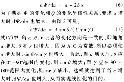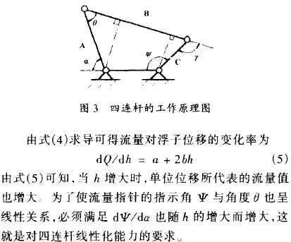 由式(4)可知(zhī),流量與浮子的位(wèi)移呈非線性關系(xi),要得到線性刻度(dù)或輸出線性的電(diàn)流信号,就必須設(she)計非線性修正機(jī)構進行線性化。