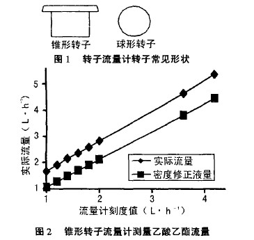 轉(zhuan)子流量(liang)計常見(jiàn)的轉子(zi)形狀如(rú)圖1所示(shì),左邊圖(tu)形的轉(zhuǎn)♻️子✂️用廣(guǎng)泛,爲錐(zhui)形轉子(zi);右邊的(de)圖形爲(wèi)圓珠形(xing),爲球形(xing)轉子。用(yòng)這兩種(zhǒng)轉子流(liu)量計,經(jīng)過測量(liang),得到下(xià)列較爲(wei)幾個典(dian)型的圖(tú)例。在📐錐(zhui)型轉子(zǐ)流量計(ji)中,粘度(du)爲0.52mpa.s、密度(dù)爲900kg·m-3’的液(yè)體乙酸(suān)乙醋的(de)實測結(jié)果見圖(tu)2,粘度爲(wèi)1.gmPa·s、密度爲(wei)1050kg·m-3的丁内(nei)醋的實(shi)測結果(guǒ)見圖3,圖(tú)中所示(shi)的密度(dù)修正流(liu)量曲線(xiàn)指的是(shì)僅以密(mi)度進行(hang)修正的(de)曲線🚶♀️,其(qi)修正公(gong)式爲。