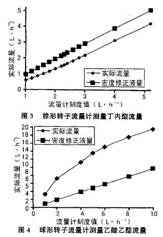 用(yong)球形轉(zhuǎn)子流量(liang)計測量(liàng)乙酸乙(yi)醋的結(jié)果見圖(tú)4,由圖可(kě)知,球形(xíng)轉子流(liú)量計的(de)這種類(lei)型,粘度(dù)對其的(de)影響非(fei)常之大(dà),且實際(ji)流✔️量的(de)線性度(du)也極差(chà)。所以在(zai)實驗中(zhōng)絕對不(bu)可忽視(shì)粘度對(duì)示值的(de)影響。