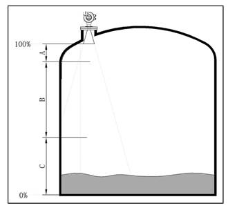 若介(jie)質爲低介電(dian)常數當其處(chù)于低液位時(shi),罐低可見,此(ci)時爲💛保證測(ce)量精度,建議(yi)将零點定在(zài)低高度爲C 的(de)位置。