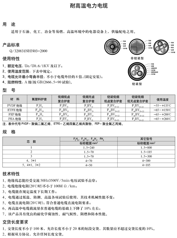 耐(nài)高溫氟塑(sù)料安裝線(xian)及電纜
