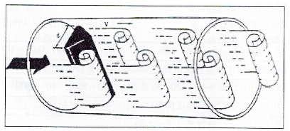 在蒸汽流(liu)體中設置三(san)角柱型旋渦(wō)發生體,則從(cong)旋🚶渦發生體(ti)兩側交替地(dì)産生有規則(ze)的旋渦,這種(zhǒng)旋渦稱爲卡(kǎ)門旋渦,如🐆右(you)圖📞所示,旋渦(wō)列在旋渦發(fā)生體下遊非(fei)對稱🌈地排列(lie)✍️。