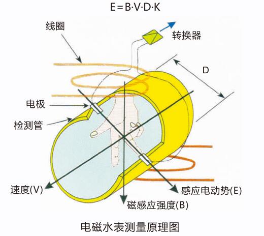 根據(ju)法拉第電磁(cí)感應原理,在(zài)與測量管軸(zhou)線和磁力線(xiàn)相🤩垂直的管(guǎn)壁上安裝了(le)對檢測電極(jí),當導電液體(tǐ)🍓沿測🤩量管軸(zhou)線運動☀️時,導(dao)電液體切割(ge)磁力線産生(sheng)感應電勢,此(cǐ)感應電勢由(you)兩個檢測電(dian)極檢出,數值(zhi)大小🛀🏻與流量(liang)成正比例,其(qi)值爲: