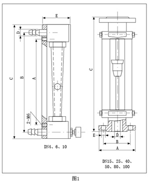 SK-LZB/LZB-( )F流量計的(de)錐管爲光滑内壁(bì)管(見圖4),通徑DN15以上(shàng)的流量計,浮子🐕通(tōng)過導杆 上下移動(dong),保持穩定;SK-LZJ/LZJ-( )F流量計(jì)錐管 内㊙️壁有三條(tiáo)導向凸筋,使浮子(zǐ)保持穩定(見圖4)。通(tōng)✊徑DN10以下的流量計(ji)采用軟管連♋接,配(pei)有 針形流量調節(jie)閥;通徑DN15以上流量(liang)計采用法蘭連接(jie)。 |