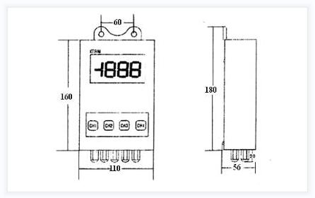 15.安裝方式: 壁(bi)挂式:160(高)×110(寬)×56(厚);兩(liang)固定孔距離60mm.固(gù)定螺釘M4×10mm.