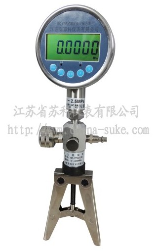 是用(yòng)手持壓力(li)泵爲手持(chí)式氣壓壓(ya)力源,壓力(li)通過壓力(li)泵頂部進(jin)入标準精(jing)密表頭而(er)達到