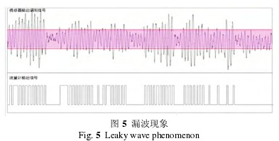 通(tong)常認爲(wei),管道裏(li)的蒸汽(qi)流速不(bú)會超過(guò) 60m/s,在選擇(zé)流量計(jì)時,量程(cheng)達到 60m/s 就(jiù)已足夠(gou),而采用(yong)在線實(shi)時頻譜(pǔ)分析時(shi)發現:?80 及(ji)其以下(xià)的管線(xian),經常出(chu)現高于(yú) 80m/s 的高流(liú)速,其中(zhong)有近一(yi)半的出(chū)現超過(guo) 100m/s 的高流(liú)速,更有(you)甚者,流(liú)速高達(dá) 180m/s。一般的(de)渦街流(liú)量計在(zai)流速過(guo)高時,因(yin)劇烈的(de)漏波現(xiàn)象,出現(xian)難以估(gū)算的誤(wù)差,所以(yi)也難于(yú)判斷超(chao)高流速(su)的大小(xiao)。如圖 5 所(suǒ)示,漏波(bō)現象使(shi)流量偏(piān)小 44.3%。針對(duì)這一現(xiàn)象,采用(yong)頻譜分(fen)析+動态(tài)濾波,改(gai)善信号(hào)波動,消(xiao)除“漏波(bō)”現象。