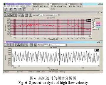 信号(hào)的濾波(bo)處理通(tong)常是信(xìn)号處理(lǐ)中常用(yòng)的方法(fa)。信号的(de)濾波主(zhǔ)要是獲(huò)得自己(ji)想要的(de)信号,并(bìng)且過濾(lü)掉不符(fu)合實驗(yan)要求的(de)信号。通(tōng)常有低(di)通、高通(tong)、帶通、帶(dai)阻這幾(jǐ)種方式(shì)。實際應(ying)用中,通(tong)常是設(she)計濾波(bō)電路對(duì)電路進(jin)行濾波(bō)。在測試(shì)測量中(zhong),往往需(xū)要的是(shi)濾掉信(xìn)号中的(de)雜波。盡(jìn)可能排(pái)除影響(xiǎng)因素,通(tong)過對傳(chuán)感器原(yuán)始信号(hao)直接進(jin)行實時(shi)頻譜分(fen)析,得出(chu)超高流(liú)速時的(de)流量值(zhi)。如圖 6 所(suo)示。