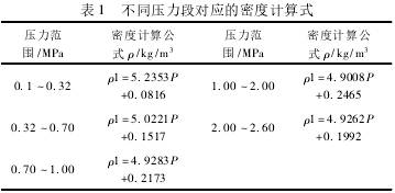 解決(jue)這個矛盾(dun)的方法是(shì)分段拟合(he),即在不同(tong)的壓力段(duan)采用不同(tong)的系數和(hé)常數。表1所(suǒ)示爲不同(tong)壓力段對(duì)🏃♀️應的不同(tóng)密度計算(suàn)式[4]。