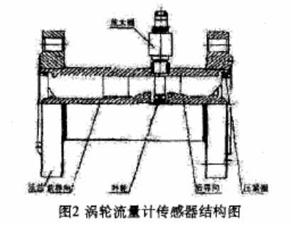 下(xià)圖爲渦輪流(liu)量計傳感器(qi)的結構圖: